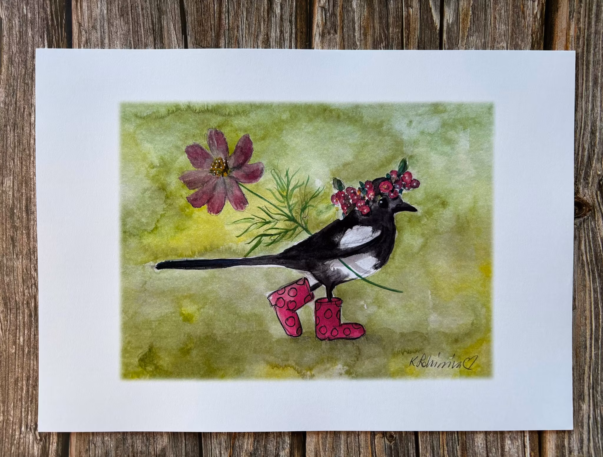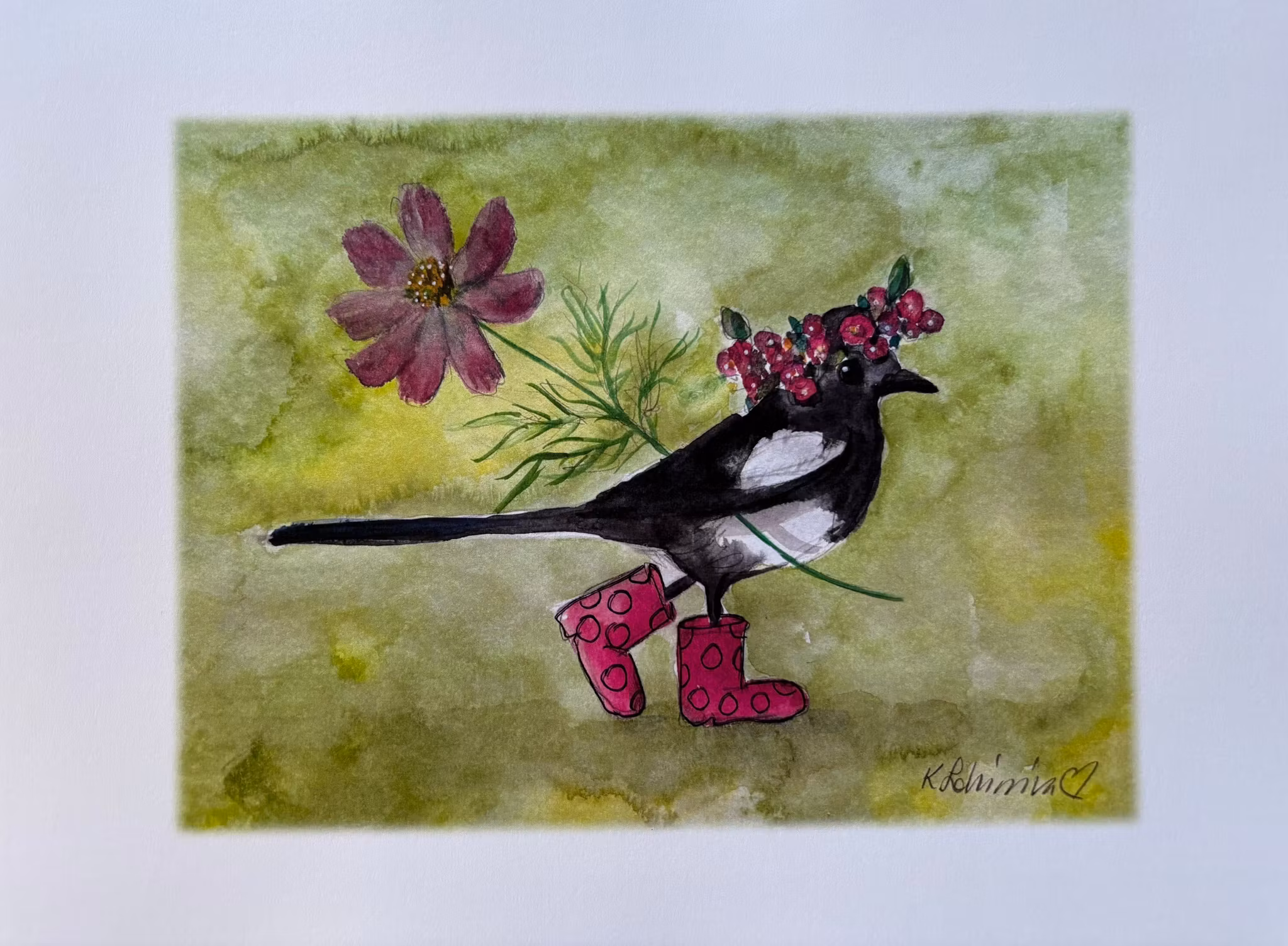 Hej lilla skatan med midsommarkrans. Mått A3